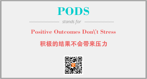 上述内容是“Positive Outcomes Don\'t Stress”作为“PODS”的缩写,解释为“积极的结果不会带来压力”时的信息,以及英文缩略词PODS所代表的英文单词,其对应的中文拼音、详细解释以及在英文中的流行度和相关分类、应用领域及应用示例等。