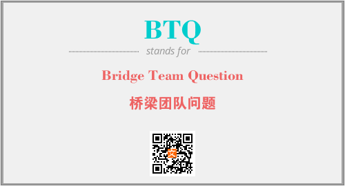 上述内容是“Bridge Team Question”作为“BTQ”的缩写,解释为“桥梁团队问题”时的信息,以及英文缩略词BTQ所代表的英文单词,其对应的中文拼音、详细解释以及在英文中的流行度和相关分类、应用领域及应用示例等。