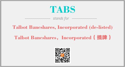 上述内容是“Talbot Bancshares, Incorporated (de-listed)”作为“TABS”的缩写,解释为“Talbot Bancshares,Incorporated(摘牌)”时的信息,以及英文缩略词TABS所代表的英文单词,其对应的中文拼音、详细解释以及在英文中的流行度和相关分类、应用领域及应用示例等。