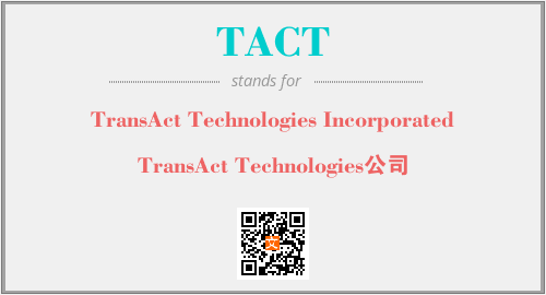 英文缩略词“TACT”经常作为“TransAct Technologies Incorporated”的英文缩写来使用,中文表示:“TransAct Technologies公司”。本文将详细介绍英文缩写词TACT所代表英文单词,其对应的中文拼音、详细解释以及在英语中的流行度。此外,还有关于缩略词TACT的分类、应用领域及相关应用示例等。
