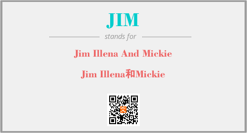 上述内容是“Jim Illena And Mickie”作为“JIM”的缩写,解释为“Jim Illena和Mickie”时的信息,以及英文缩略词JIM所代表的英文单词,其对应的中文拼音、详细解释以及在英文中的流行度和相关分类、应用领域及应用示例等。