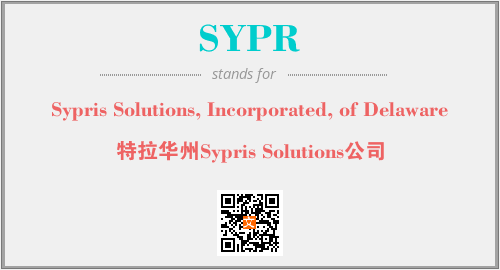 上述内容是“Sypris Solutions, Incorporated, of Delaware”作为“SYPR”的缩写,解释为“特拉华州Sypris Solutions公司”时的信息,以及英文缩略词SYPR所代表的英文单词,其对应的中文拼音、详细解释以及在英文中的流行度和相关分类、应用领域及应用示例等。