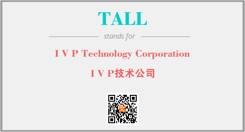 上述内容是“I V P Technology Corporation”作为“TALL”的缩写,解释为“I V P技术公司”时的信息,以及英文缩略词TALL所代表的英文单词,其对应的中文拼音、详细解释以及在英文中的流行度和相关分类、应用领域及应用示例等。