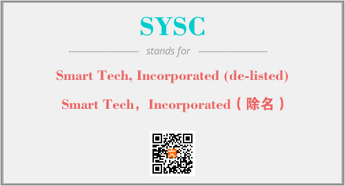 上述内容是“Smart Tech, Incorporated (de-listed)”作为“SYSC”的缩写,解释为“Smart Tech,Incorporated(除名)”时的信息,以及英文缩略词SYSC所代表的英文单词,其对应的中文拼音、详细解释以及在英文中的流行度和相关分类、应用领域及应用示例等。