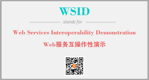 上述内容是“Web Services Interoperability Demonstration”作为“WSID”的缩写,解释为“Web服务互操作性演示”时的信息,以及英文缩略词WSID所代表的英文单词,其对应的中文拼音、详细解释以及在英文中的流行度和相关分类、应用领域及应用示例等。
