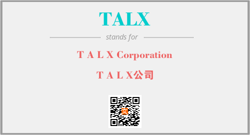上述内容是“T A L X Corporation”作为“TALX”的缩写,解释为“T A L X公司”时的信息,以及英文缩略词TALX所代表的英文单词,其对应的中文拼音、详细解释以及在英文中的流行度和相关分类、应用领域及应用示例等。