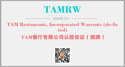 上述内容是“TAM Restaurants, Incorporated Warrants (de-listed)”作为“TAMRW”的缩写,解释为“TAM餐厅有限公司认股权证(摘牌)”时的信息,以及英文缩略词TAMRW所代表的英文单词,其对应的中文拼音、详细解释以及在英文中的流行度和相关分类、应用领域及应用示例等。