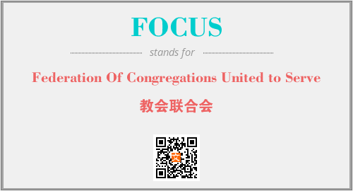 上述内容是“Federation Of Congregations United to Serve”作为“FOCUS”的缩写,解释为“教会联合会”时的信息,以及英文缩略词FOCUS所代表的英文单词,其对应的中文拼音、详细解释以及在英文中的流行度和相关分类、应用领域及应用示例等。