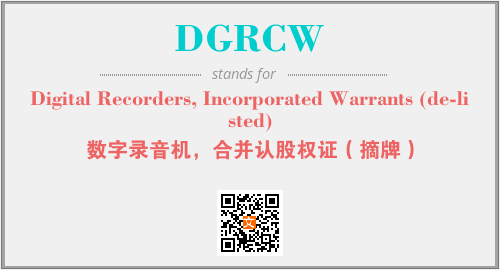 上述内容是“Digital Recorders, Incorporated Warrants (de-listed)”作为“DGRCW”的缩写,解释为“数字录音机,合并认股权证(摘牌)”时的信息,以及英文缩略词DGRCW所代表的英文单词,其对应的中文拼音、详细解释以及在英文中的流行度和相关分类、应用领域及应用示例等。