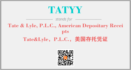 上述内容是“Tate & Lyle, P.L.C., American Depositary Receipts”作为“TATYY”的缩写,解释为“Tate&Lyle,P.L.C.,美国存托凭证”时的信息,以及英文缩略词TATYY所代表的英文单词,其对应的中文拼音、详细解释以及在英文中的流行度和相关分类、应用领域及应用示例等。