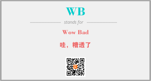 英文缩略词“WB”经常作为“Wow Bad”的英文缩写来使用,中文表示:“哇,糟透了”。本文将详细介绍英文缩写词WB所代表英文单词,其对应的中文拼音、详细解释以及在英语中的流行度。此外,还有关于缩略词WB的分类、应用领域及相关应用示例等。