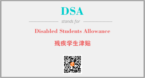 上述内容是“Disabled Students Allowance”作为“DSA”的缩写,解释为“残疾学生津贴”时的信息,以及英文缩略词DSA所代表的英文单词,其对应的中文拼音、详细解释以及在英文中的流行度和相关分类、应用领域及应用示例等。