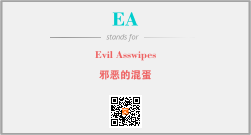 英文缩略词“EA”经常作为“Evil Asswipes”的英文缩写来使用,中文表示:“邪恶的混蛋”。本文将详细介绍英文缩写词EA所代表英文单词,其对应的中文拼音、详细解释以及在英语中的流行度。此外,还有关于缩略词EA的分类、应用领域及相关应用示例等。