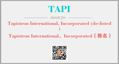 上述内容是“Tapistron International, Incorporated (de-listed)”作为“TAPI”的缩写,解释为“Tapistron International,Incorporated(除名)”时的信息,以及英文缩略词TAPI所代表的英文单词,其对应的中文拼音、详细解释以及在英文中的流行度和相关分类、应用领域及应用示例等。