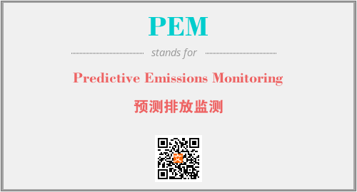上述内容是“Predictive Emissions Monitoring”作为“PEM”的缩写,解释为“预测排放监测”时的信息,以及英文缩略词PEM所代表的英文单词,其对应的中文拼音、详细解释以及在英文中的流行度和相关分类、应用领域及应用示例等。