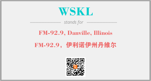 上述内容是“FM-92.9, Danville, Illinois”作为“WSKL”的缩写,解释为“FM-92.9,伊利诺伊州丹维尔”时的信息,以及英文缩略词WSKL所代表的英文单词,其对应的中文拼音、详细解释以及在英文中的流行度和相关分类、应用领域及应用示例等。