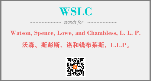 上述内容是“Watson, Spence, Lowe, and Chambless, L. L. P.”作为“WSLC”的缩写,解释为“沃森、斯彭斯、洛和钱布莱斯,L.L.P。”时的信息,以及英文缩略词WSLC所代表的英文单词,其对应的中文拼音、详细解释以及在英文中的流行度和相关分类、应用领域及应用示例等。