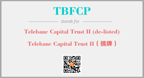上述内容是“Telebanc Capital Trust II (de-listed)”作为“TBFCP”的缩写,解释为“Telebanc Capital Trust II(摘牌)”时的信息,以及英文缩略词TBFCP所代表的英文单词,其对应的中文拼音、详细解释以及在英文中的流行度和相关分类、应用领域及应用示例等。