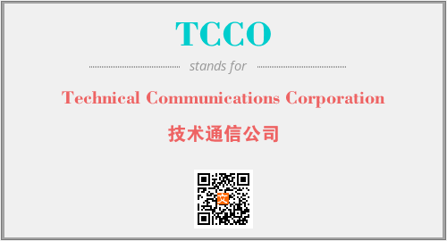 英文缩略词“TCCO”经常作为“Technical Communications Corporation”的英文缩写来使用,中文表示:“技术通信公司”。本文将详细介绍英文缩写词TCCO所代表英文单词,其对应的中文拼音、详细解释以及在英语中的流行度。此外,还有关于缩略词TCCO的分类、应用领域及相关应用示例等。