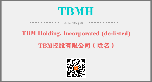 上述内容是“TBM Holding, Incorporated (de-listed)”作为“TBMH”的缩写,解释为“TBM控股有限公司(除名)”时的信息,以及英文缩略词TBMH所代表的英文单词,其对应的中文拼音、详细解释以及在英文中的流行度和相关分类、应用领域及应用示例等。