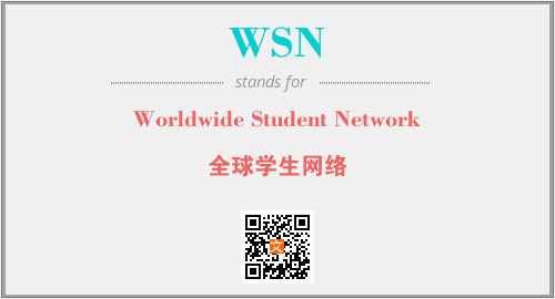 英文缩略词“WSN”经常作为“Worldwide Student Network”的英文缩写来使用,中文表示:“全球学生网络”。本文将详细介绍英文缩写词WSN所代表英文单词,其对应的中文拼音、详细解释以及在英语中的流行度。此外,还有关于缩略词WSN的分类、应用领域及相关应用示例等。