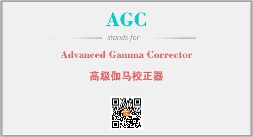 英文缩略词“AGC”经常作为“Advanced Gamma Corrector”的英文缩写来使用,中文表示:“高级伽马校正器”。本文将详细介绍英文缩写词AGC所代表英文单词,其对应的中文拼音、详细解释以及在英语中的流行度。此外,还有关于缩略词AGC的分类、应用领域及相关应用示例等。