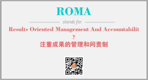 上述内容是“Results Oriented Management And Accountability”作为“ROMA”的缩写,解释为“注重成果的管理和问责制”时的信息,以及英文缩略词ROMA所代表的英文单词,其对应的中文拼音、详细解释以及在英文中的流行度和相关分类、应用领域及应用示例等。