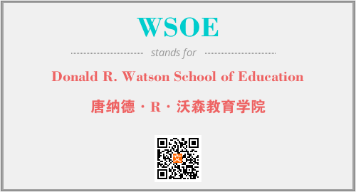 以上为Donald R. Watson School of Education英文缩略词WSOE的中文解释,以及该英文缩写在英语的流行度、分类和应用领域方面的信息。