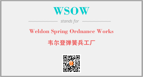 英文缩略词“WSOW”经常作为“Weldon Spring Ordnance Works”的英文缩写来使用,中文表示:“韦尔登弹簧兵工厂”。本文将详细介绍英文缩写词WSOW所代表英文单词,其对应的中文拼音、详细解释以及在英语中的流行度。此外,还有关于缩略词WSOW的分类、应用领域及相关应用示例等。