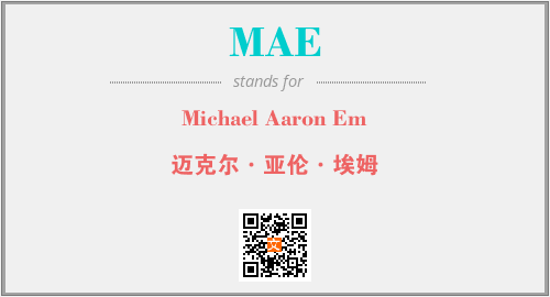 上述内容是“Michael Aaron Em”作为“MAE”的缩写,解释为“迈克尔·亚伦·埃姆”时的信息,以及英文缩略词MAE所代表的英文单词,其对应的中文拼音、详细解释以及在英文中的流行度和相关分类、应用领域及应用示例等。
