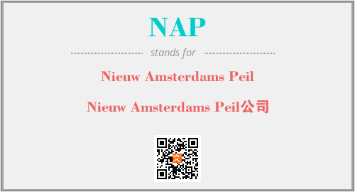 上述内容是“Nieuw Amsterdams Peil”作为“NAP”的缩写,解释为“Nieuw Amsterdams Peil公司”时的信息,以及英文缩略词NAP所代表的英文单词,其对应的中文拼音、详细解释以及在英文中的流行度和相关分类、应用领域及应用示例等。