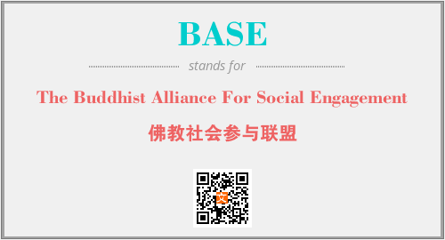 上述内容是“The Buddhist Alliance For Social Engagement”作为“BASE”的缩写,解释为“佛教社会参与联盟”时的信息,以及英文缩略词BASE所代表的英文单词,其对应的中文拼音、详细解释以及在英文中的流行度和相关分类、应用领域及应用示例等。