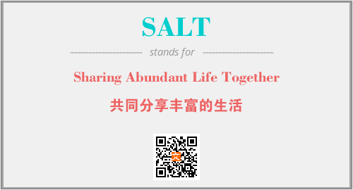 以上为Sharing Abundant Life Together英文缩略词SALT的中文解释,以及该英文缩写在英语的流行度、分类和应用领域方面的信息。