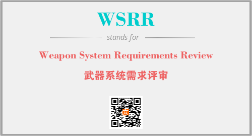 上述内容是“Weapon System Requirements Review”作为“WSRR”的缩写,解释为“武器系统需求评审”时的信息,以及英文缩略词WSRR所代表的英文单词,其对应的中文拼音、详细解释以及在英文中的流行度和相关分类、应用领域及应用示例等。