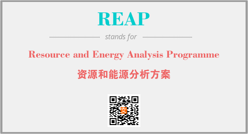 上述内容是“Resource and Energy Analysis Programme”作为“REAP”的缩写,解释为“资源和能源分析方案”时的信息,以及英文缩略词REAP所代表的英文单词,其对应的中文拼音、详细解释以及在英文中的流行度和相关分类、应用领域及应用示例等。