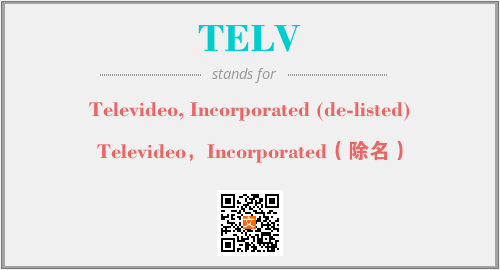 上述内容是“Televideo, Incorporated (de-listed)”作为“TELV”的缩写,解释为“Televideo,Incorporated(除名)”时的信息,以及英文缩略词TELV所代表的英文单词,其对应的中文拼音、详细解释以及在英文中的流行度和相关分类、应用领域及应用示例等。