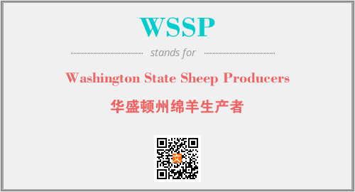 上述内容是“Washington State Sheep Producers”作为“WSSP”的缩写,解释为“华盛顿州绵羊生产者”时的信息,以及英文缩略词WSSP所代表的英文单词,其对应的中文拼音、详细解释以及在英文中的流行度和相关分类、应用领域及应用示例等。