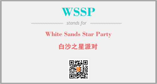 上述内容是“White Sands Star Party”作为“WSSP”的缩写,解释为“白沙之星派对”时的信息,以及英文缩略词WSSP所代表的英文单词,其对应的中文拼音、详细解释以及在英文中的流行度和相关分类、应用领域及应用示例等。