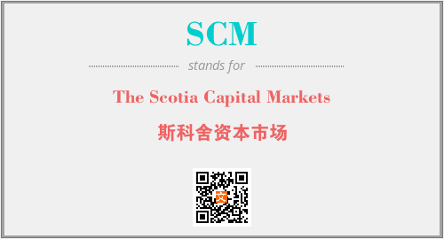 上述内容是“The Scotia Capital Markets”作为“SCM”的缩写,解释为“斯科舍资本市场”时的信息,以及英文缩略词SCM所代表的英文单词,其对应的中文拼音、详细解释以及在英文中的流行度和相关分类、应用领域及应用示例等。