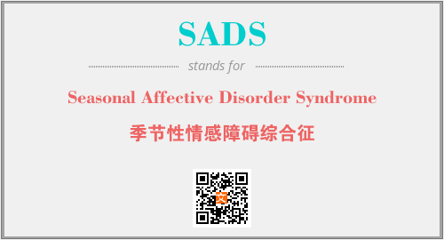 英文缩略词“SADS”经常作为“Seasonal Affective Disorder Syndrome”的英文缩写来使用,中文表示:“季节性情感障碍综合征”。本文将详细介绍英文缩写词SADS所代表英文单词,其对应的中文拼音、详细解释以及在英语中的流行度。此外,还有关于缩略词SADS的分类、应用领域及相关应用示例等。