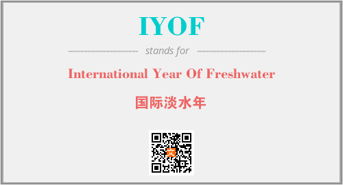 上述内容是“International Year Of Freshwater”作为“IYOF”的缩写,解释为“国际淡水年”时的信息,以及英文缩略词IYOF所代表的英文单词,其对应的中文拼音、详细解释以及在英文中的流行度和相关分类、应用领域及应用示例等。