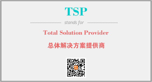 上述内容是“Total Solution Provider”作为“TSP”的缩写,解释为“总体解决方案提供商”时的信息,以及英文缩略词TSP所代表的英文单词,其对应的中文拼音、详细解释以及在英文中的流行度和相关分类、应用领域及应用示例等。