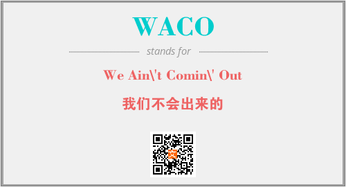 以上为We Ain\'t Comin\' Out英文缩略词WACO的中文解释,以及该英文缩写在英语的流行度、分类和应用领域方面的信息。