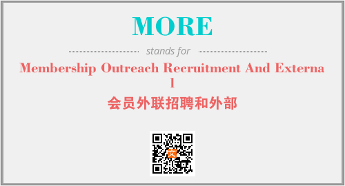 上述内容是“Membership Outreach Recruitment And External”作为“MORE”的缩写,解释为“会员外联招聘和外部”时的信息,以及英文缩略词MORE所代表的英文单词,其对应的中文拼音、详细解释以及在英文中的流行度和相关分类、应用领域及应用示例等。