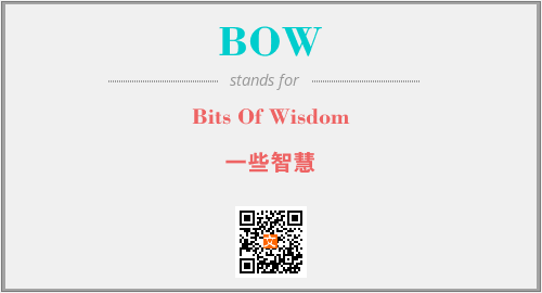 英文缩略词“BOW”经常作为“Bits Of Wisdom”的英文缩写来使用,中文表示:“一些智慧”。本文将详细介绍英文缩写词BOW所代表英文单词,其对应的中文拼音、详细解释以及在英语中的流行度。此外,还有关于缩略词BOW的分类、应用领域及相关应用示例等。