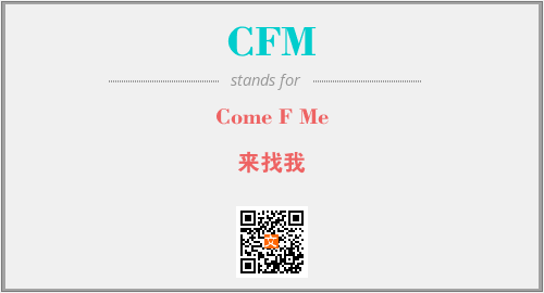 英文缩略词“CFM”经常作为“Come F Me”的英文缩写来使用,中文表示:“来找我”。本文将详细介绍英文缩写词CFM所代表英文单词,其对应的中文拼音、详细解释以及在英语中的流行度。此外,还有关于缩略词CFM的分类、应用领域及相关应用示例等。