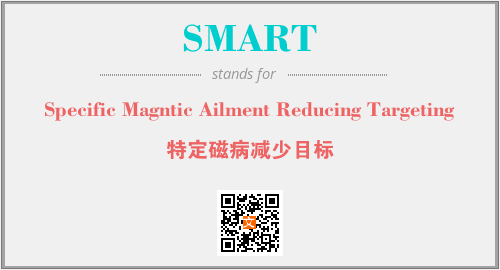 上述内容是“Specific Magntic Ailment Reducing Targeting”作为“SMART”的缩写,解释为“特定磁病减少目标”时的信息,以及英文缩略词SMART所代表的英文单词,其对应的中文拼音、详细解释以及在英文中的流行度和相关分类、应用领域及应用示例等。
