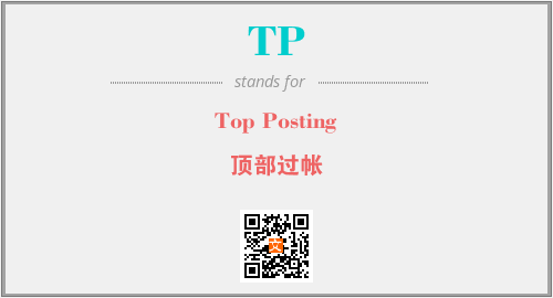 英文缩略词“TP”经常作为“Top Posting”的英文缩写来使用,中文表示:“顶部过帐”。本文将详细介绍英文缩写词TP所代表英文单词,其对应的中文拼音、详细解释以及在英语中的流行度。此外,还有关于缩略词TP的分类、应用领域及相关应用示例等。