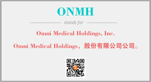 上述内容是“Omni Medical Holdings, Inc.”作为“ONMH”的缩写,解释为“Omni Medical Holdings,股份有限公司公司。”时的信息,以及英文缩略词ONMH所代表的英文单词,其对应的中文拼音、详细解释以及在英文中的流行度和相关分类、应用领域及应用示例等。