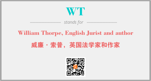 上述内容是“William Thorpe, English Jurist and author”作为“WT”的缩写,解释为“威廉·索普,英国法学家和作家”时的信息,以及英文缩略词WT所代表的英文单词,其对应的中文拼音、详细解释以及在英文中的流行度和相关分类、应用领域及应用示例等。